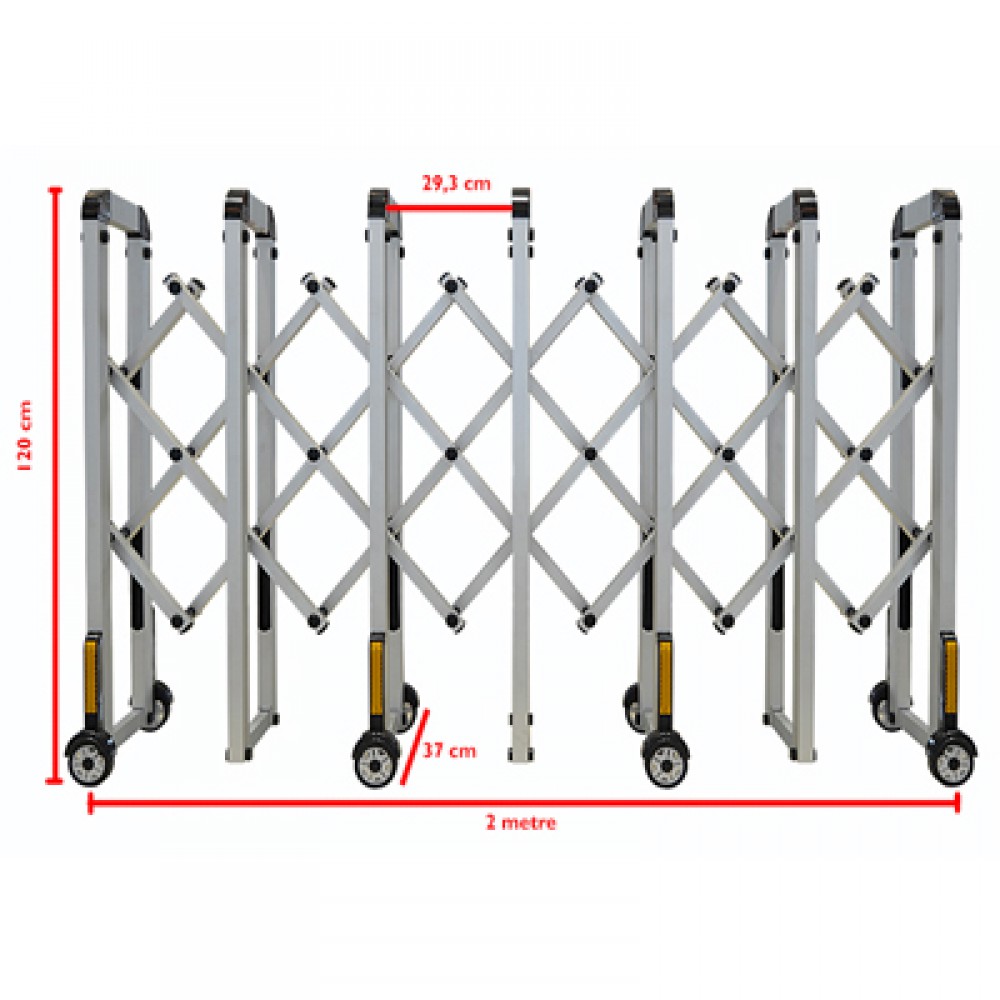 • Akordiyon Mobil Katlanır Alüminyum Bariyer 200X120X37CM
